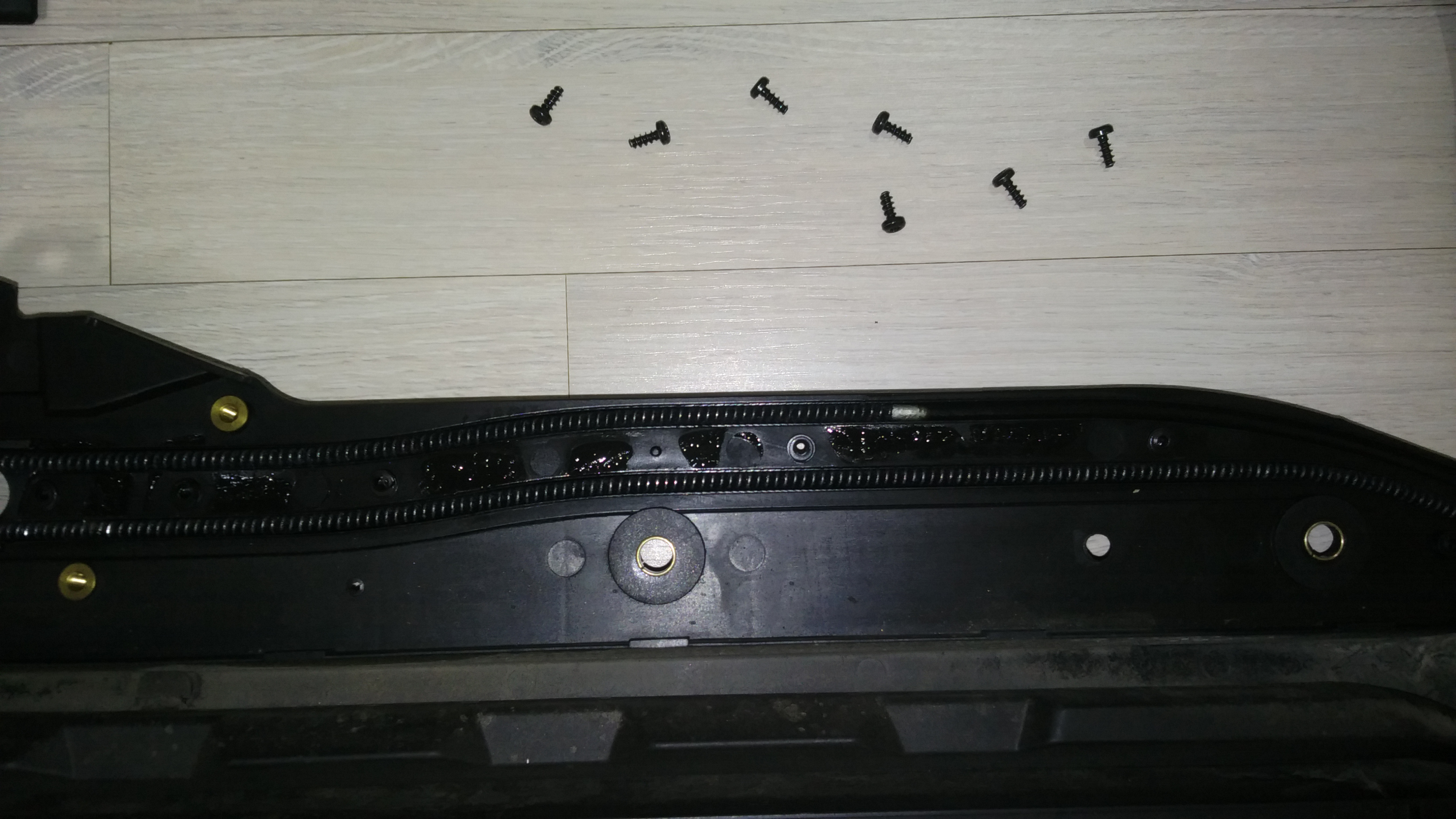 이건 운전석쪽입니다. 레일을 타야 될 부분이 부러지고 없습니다.